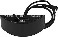 De Leslie Switch met Chorale, Stop en Tremolo: let op de jackplug.