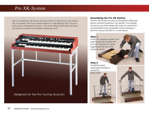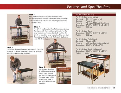 Stap 2 is lichtelijk ingrijpender: Hammond ontwierp speciaal voor de XK-3C een onder-klavier, welke er niet alleen fysiek naadloos "onderklikt" maar er ook elektronisch voor 100 % mee samensmelt. De omgekeerd gekleurde preset toetsen nemen functie en de left-drawbargroep op de XK-3C bedient het onderklavier werken.