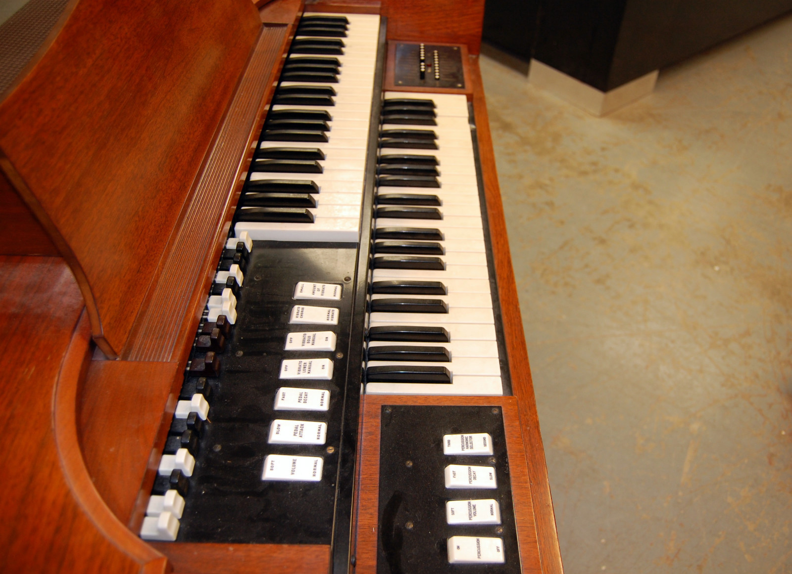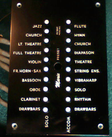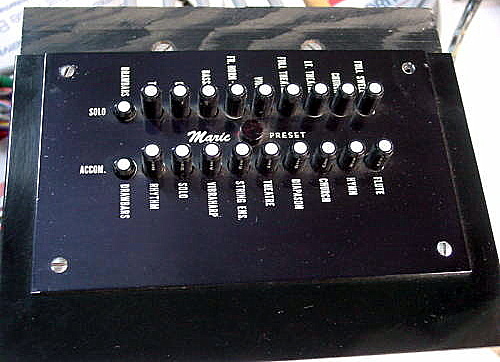 De Solo rij knoppen was uiteraard voor boven klavier, de Accom. voor het onderklavier.