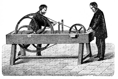 Hij koppelde een tachograaf aan de as om de draaisnelheid te kunnen regelen.
