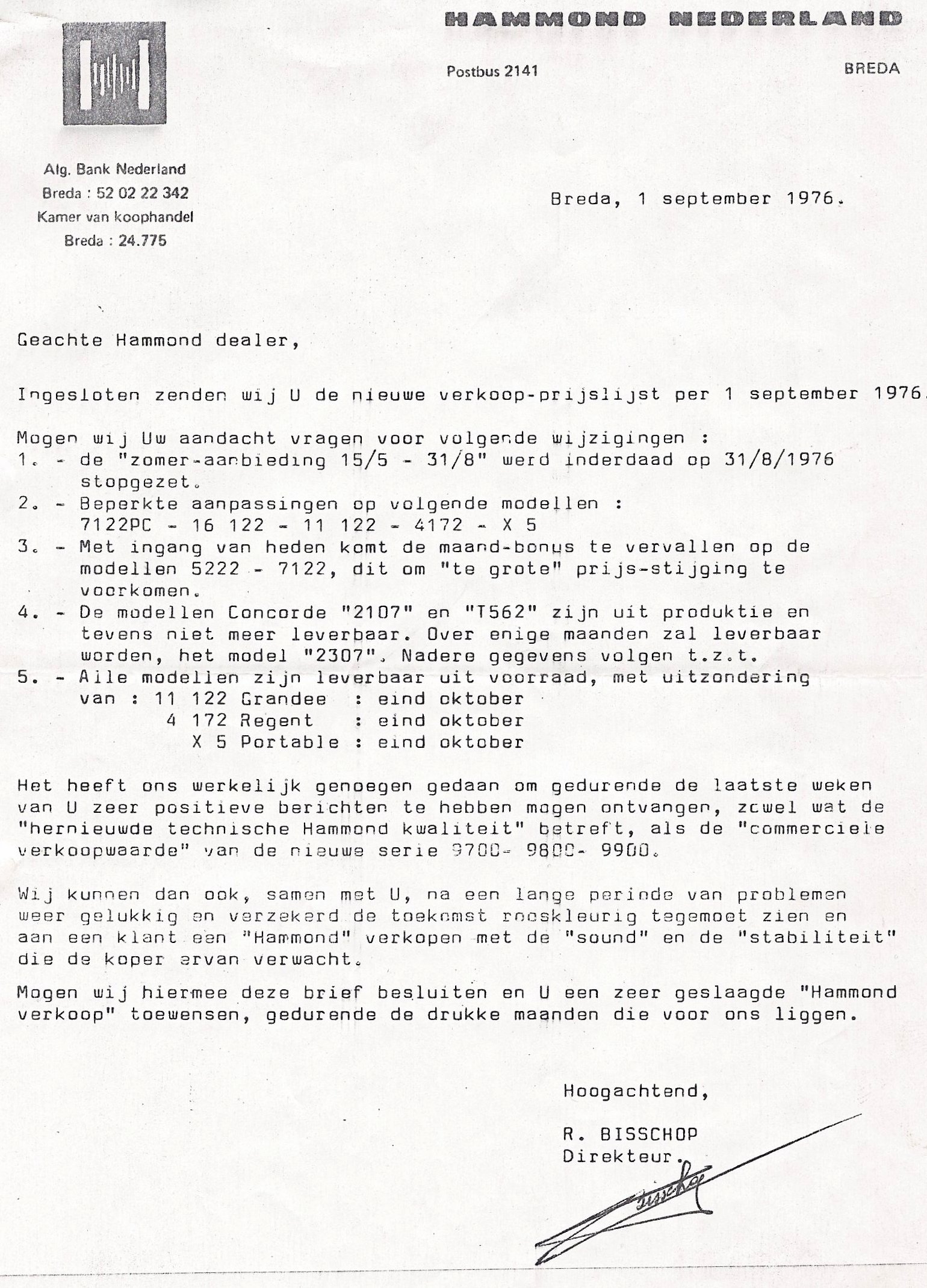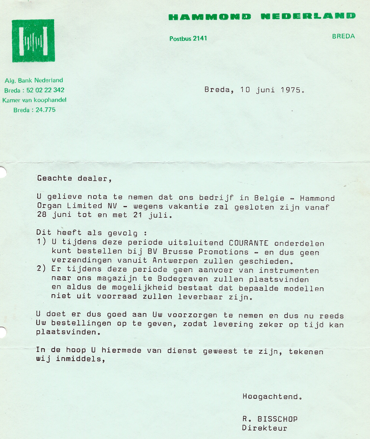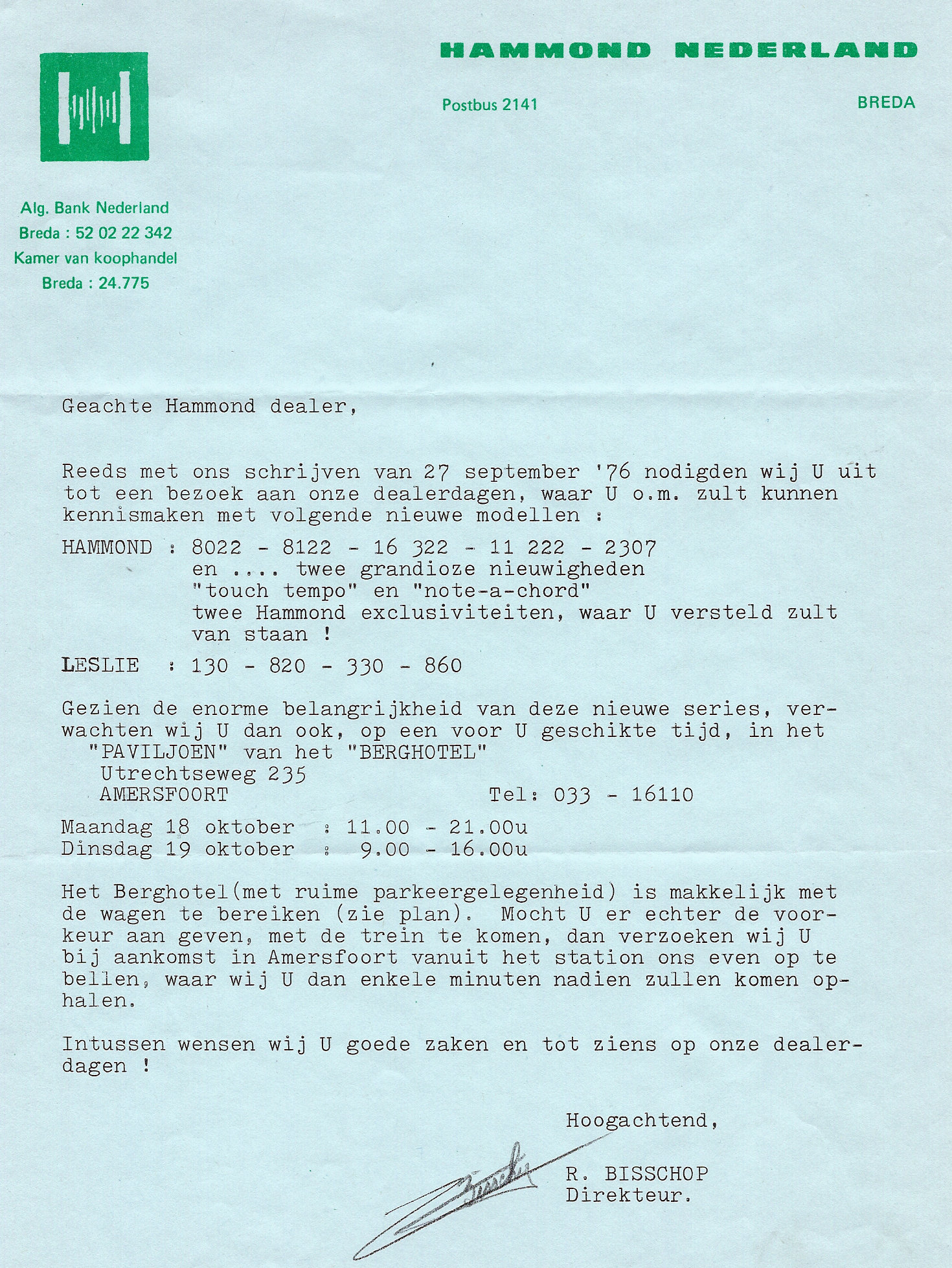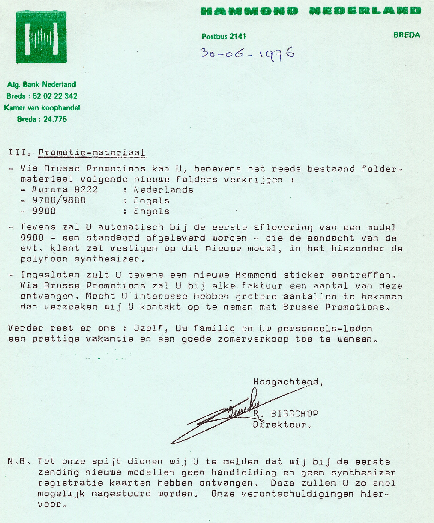 Door de jaren heen kregen de Nederlandse dealers regelmatig nieuws, tips en support van "hun" HAMMOND-importeur, uiteraard met het meest recente commerciele nieuws.