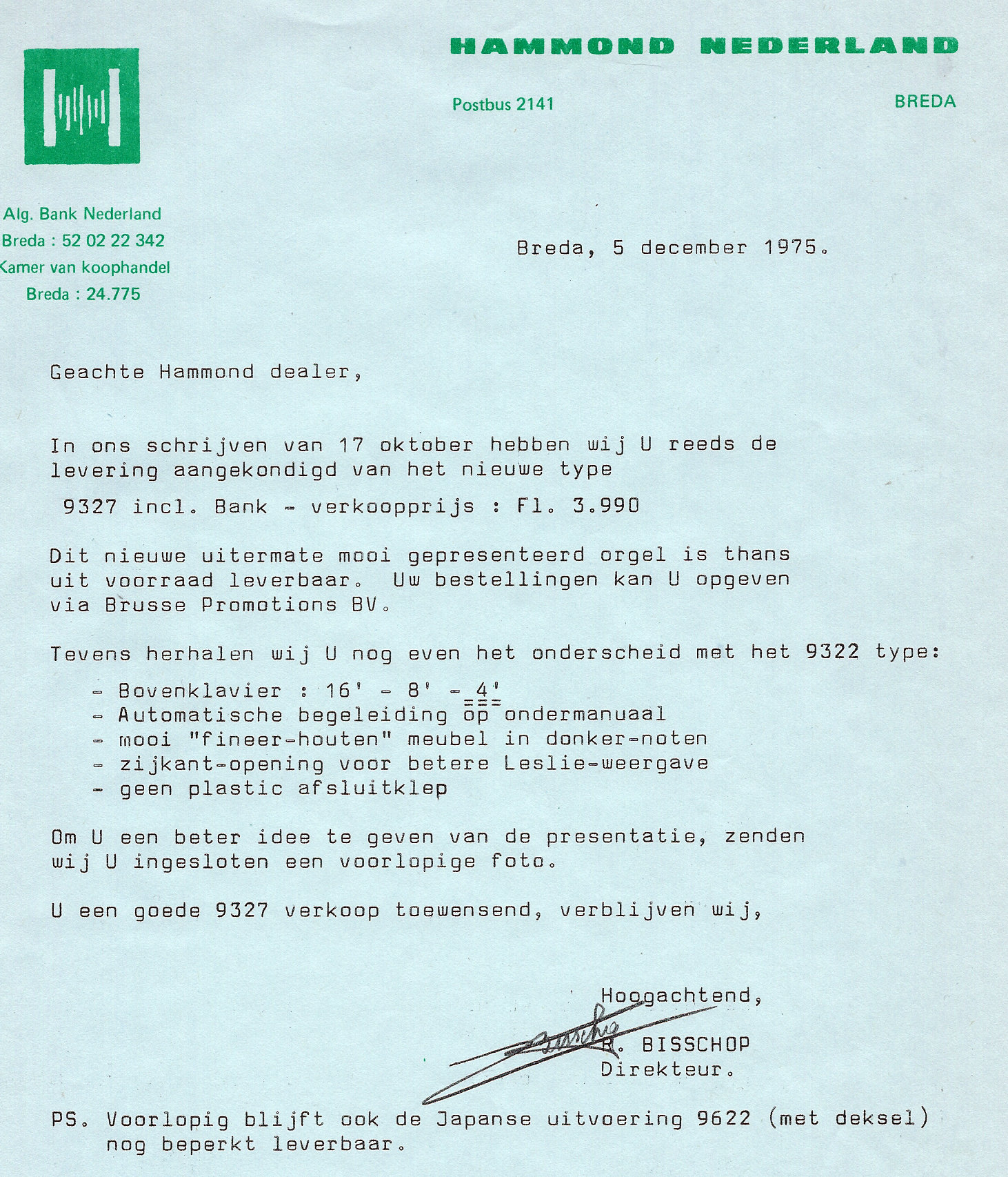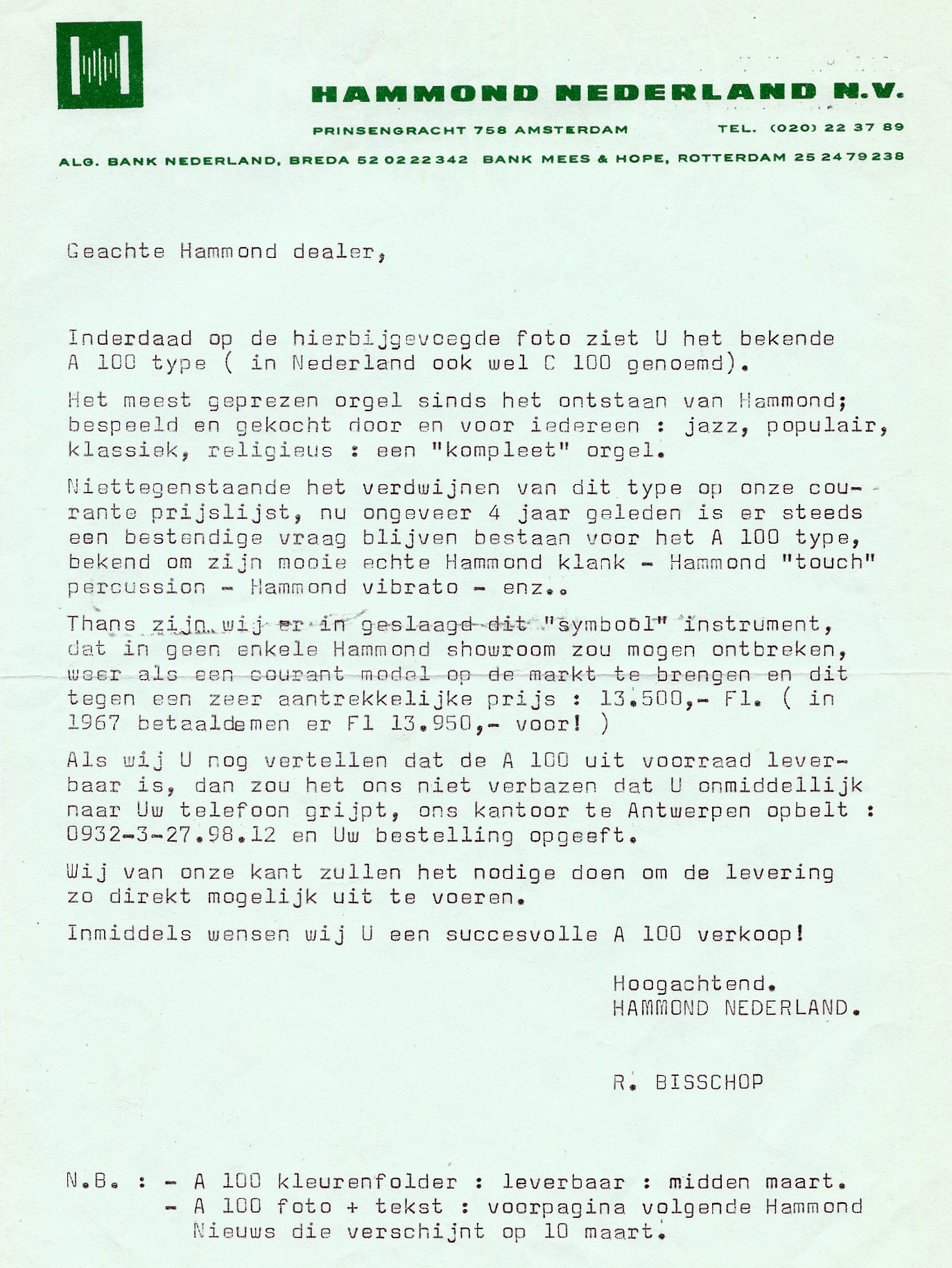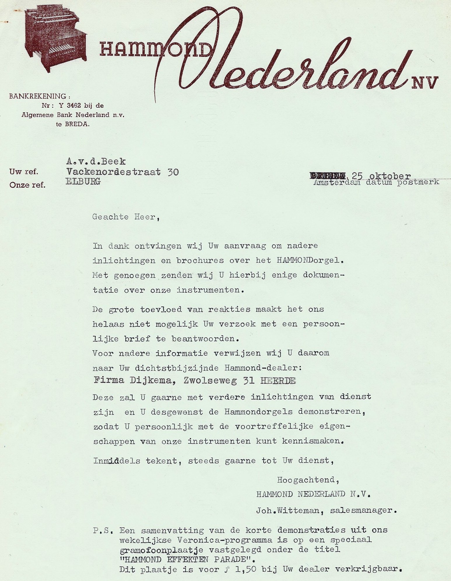 Door de jaren heen kregen de Nederlandse dealers regelmatig nieuws, tips en support van "hun" HAMMOND-importeur, uiteraard met het meest recente commerciele nieuws.