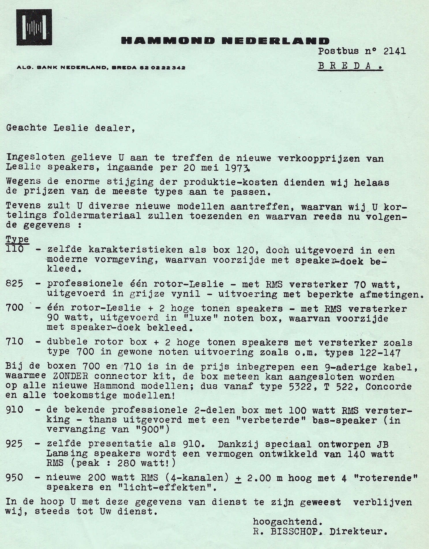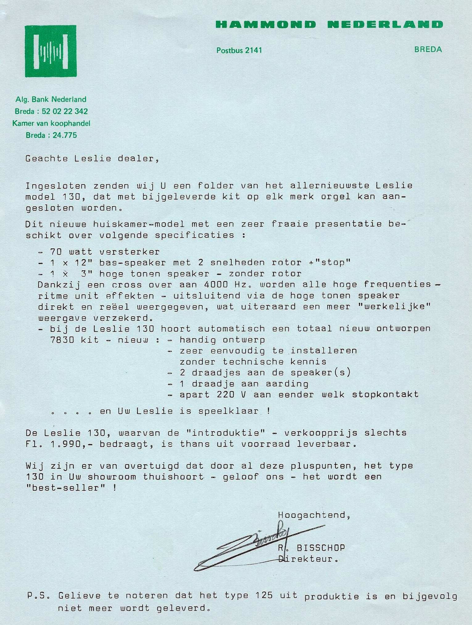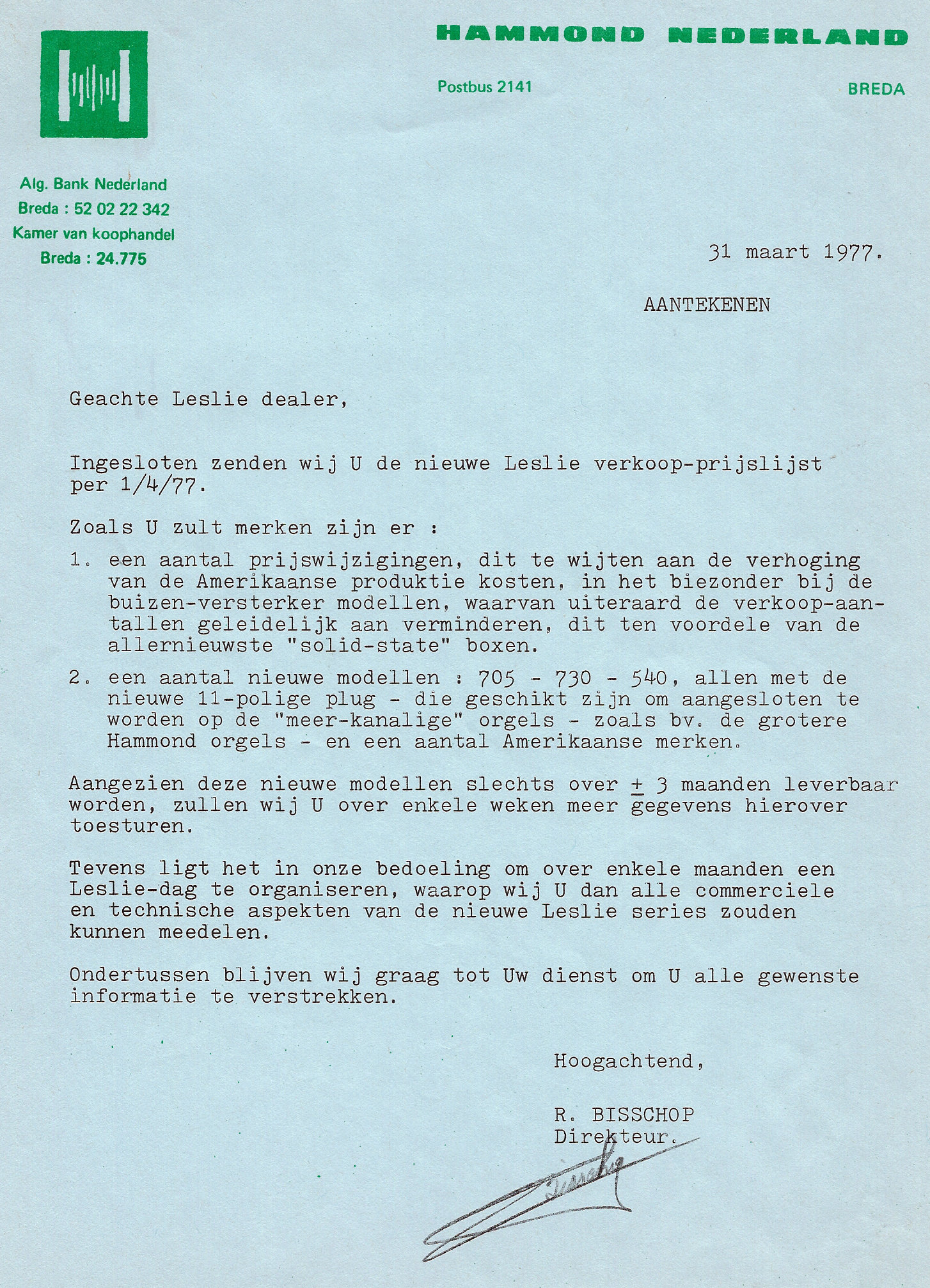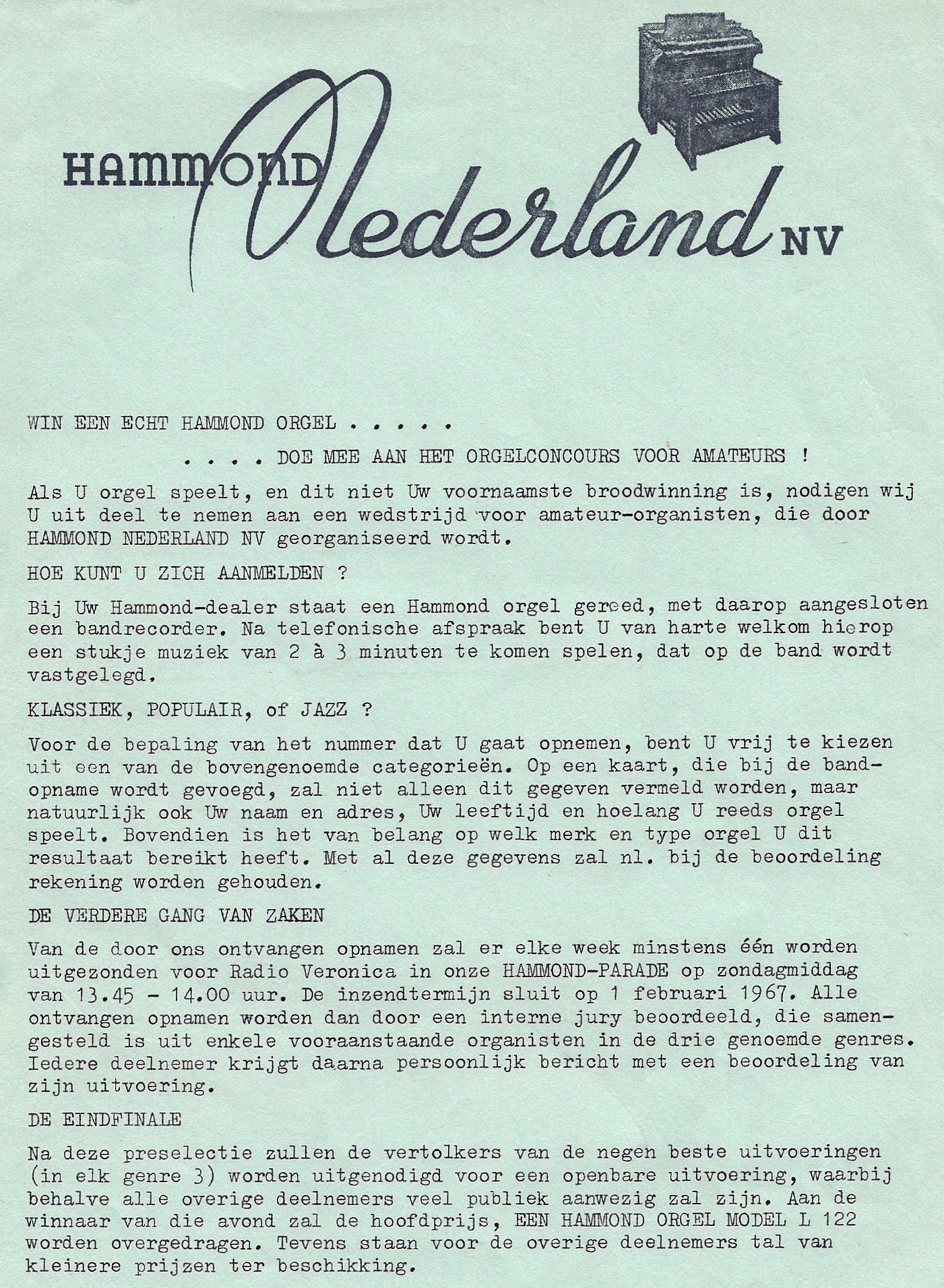Door de jaren heen kregen de Nederlandse dealers regelmatig nieuws, tips en support van "hun" HAMMOND-importeur, uiteraard met het meest recente commerciele nieuws.