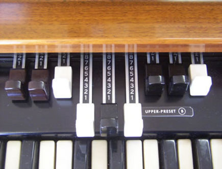 The builders of the first Hammond Organ knew they would have to make the other sounds above and below the fundamental available to the player. And they knew that the volume or intensity of each tone would have to be controlled. The solution was found in a complexity of some 1,500 tiny switches with long-wearing palladium contact points and eight-and-a-half miles of wire, some as thin as a human hair. Each key on the manual depressed nine switches. Each switch was connected to different drawbars situated above the keyboard. It was these unique Hammond harmonic drawbars that permitted the Hammond player to mix fundamental tones with overtones and control the volume of each of these ingredients in the musical melange of sound. Now called "Tone-bars®", they could be set to produce millions of different tones.