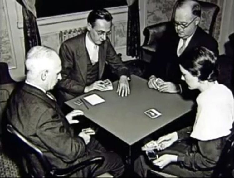 Een elektrische tafel, die in staat was speelkaarten in vier porties op te delen, zonder dat valsspelen of voorspellen mogelijk was.