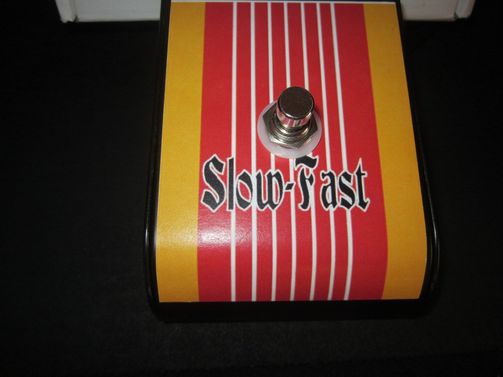 Met de stevige metalen Bypass-schakelaar zet je het pedaal aan/uit, met Brake zet je de rotors stil en tot slot met de schakelaar rechtsonder kies je tussen Slow en Fast.