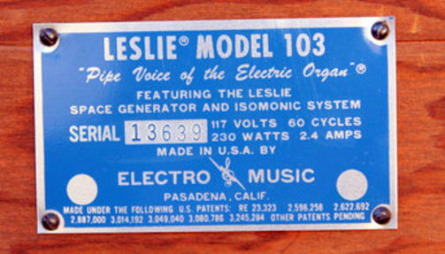 Eén kanaal ging door een regelbare drum (slow en fast) en het andere kanaal schakelde tussen een snel draaiende drum en een celeste effect, dat opgewekt werd door de "space generator" (zie model 102) Er waren ook strakke 6"x 9" speakers aan boord.