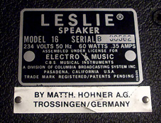 Deze Leslie had een speciale "Cross-over" voorziening, een voetschakelaar en een adapter om een gitaarversterker aan te sluiten; hij werd op de markt gebracht, om op de bühne,  anders dan orgels aan te sluiten;hij beschikte niet over een horn ( boven,-) rotor.