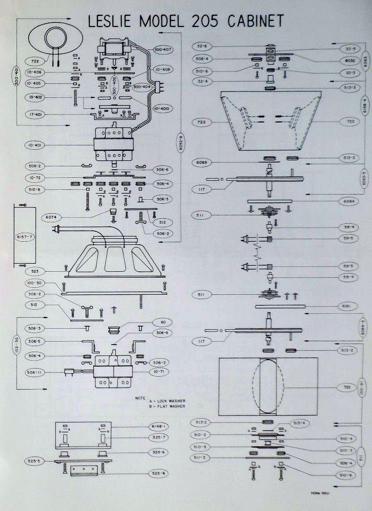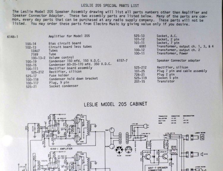 De Leslie 205 was een voortborduren van het 202-principe. Door een aantal modificaties kon de 205 nu ook voor meerdere merken gebruikt worden, wat de markt natuurlijk vergrootte. Hij was geschikt voor zowel 2,- als 3-kanaals orgels. De versterker was 4-kanaals. Wellicht is het de enige Leslie ooit gebouwd met boven 3 en onder 4 ononderbroken Louvres.