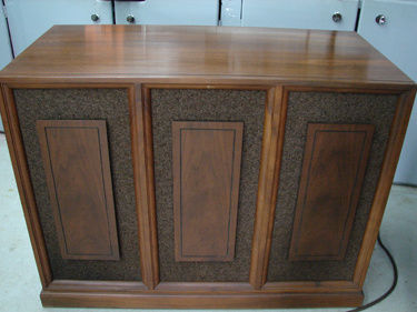 Doordat de kast zeer laag werd gehouden konden alle componenten NAAST elkaar in de kast geplaatst worden (zie foto onder)