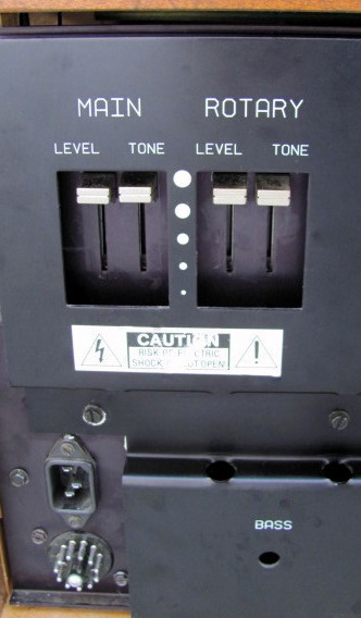 een 6 x 9 Rotosonic drum, een rotary treble driver, drie (!) strakke keyboard speakers en een 15" bass speaker werkend op beide input kanalen met een totaal van 280 Watt.
