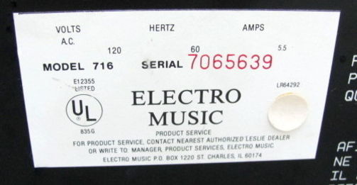 Leslie 716 is gebaseerd op de 715C, maar kreeg een ander design om beter te passen bij het kerkorgel Hammond 825 (zie hieronder)