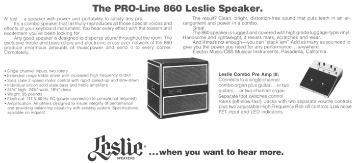Het uitgangspunt voor deze Leslie was gewoon om een compacte en transportabele Leslie aan te bieden. Door de kleinere liter inhoud van de box was het laag wel ietsje minder dan bij de 122 en dergelijke. Maar dat is inherent aan het formaat van deze Leslie. Om wat meer laag te krijgen werden er vaak twee van deze Leslies met een Y kabel op een orgel aangesloten.