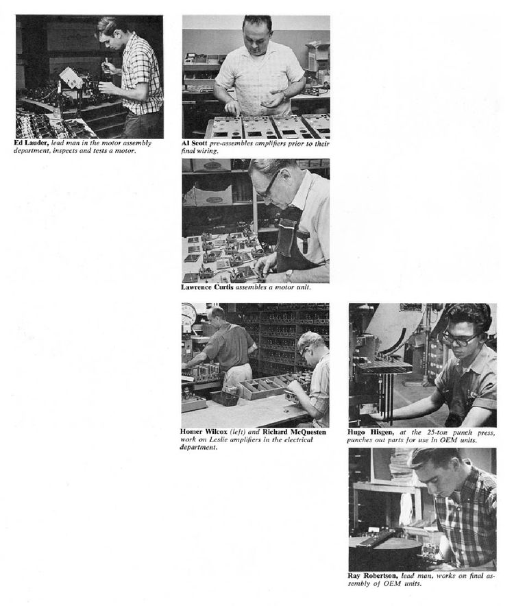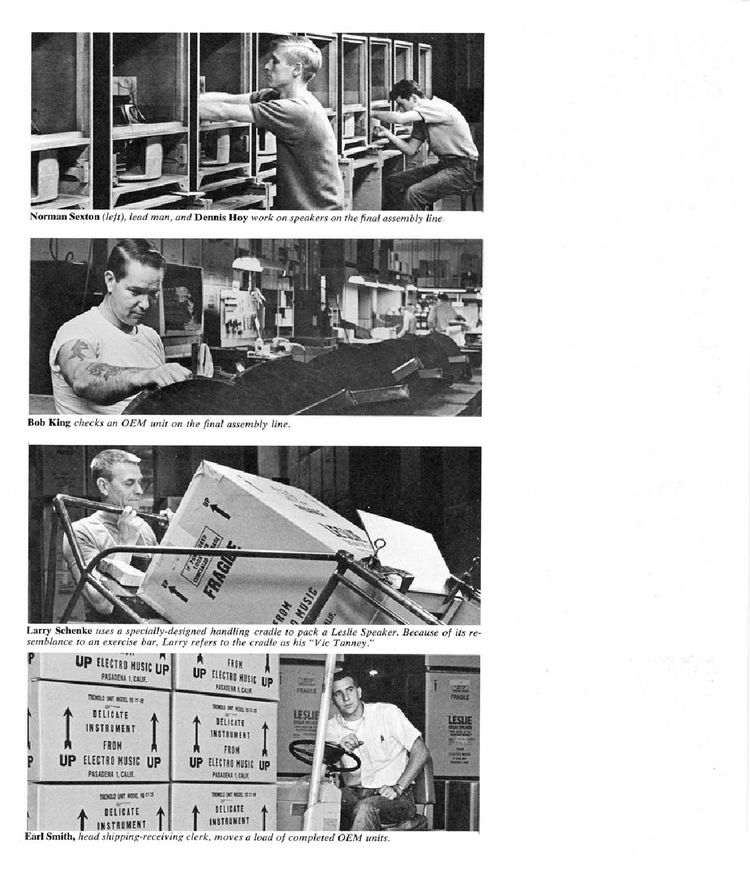 Een aantal jaren geleden kwam Electro Music uit met een brochure, waarmee een inkijkje geboden werd in de Leslie fabriek en een aantal van zijn werknemers werden belicht.
