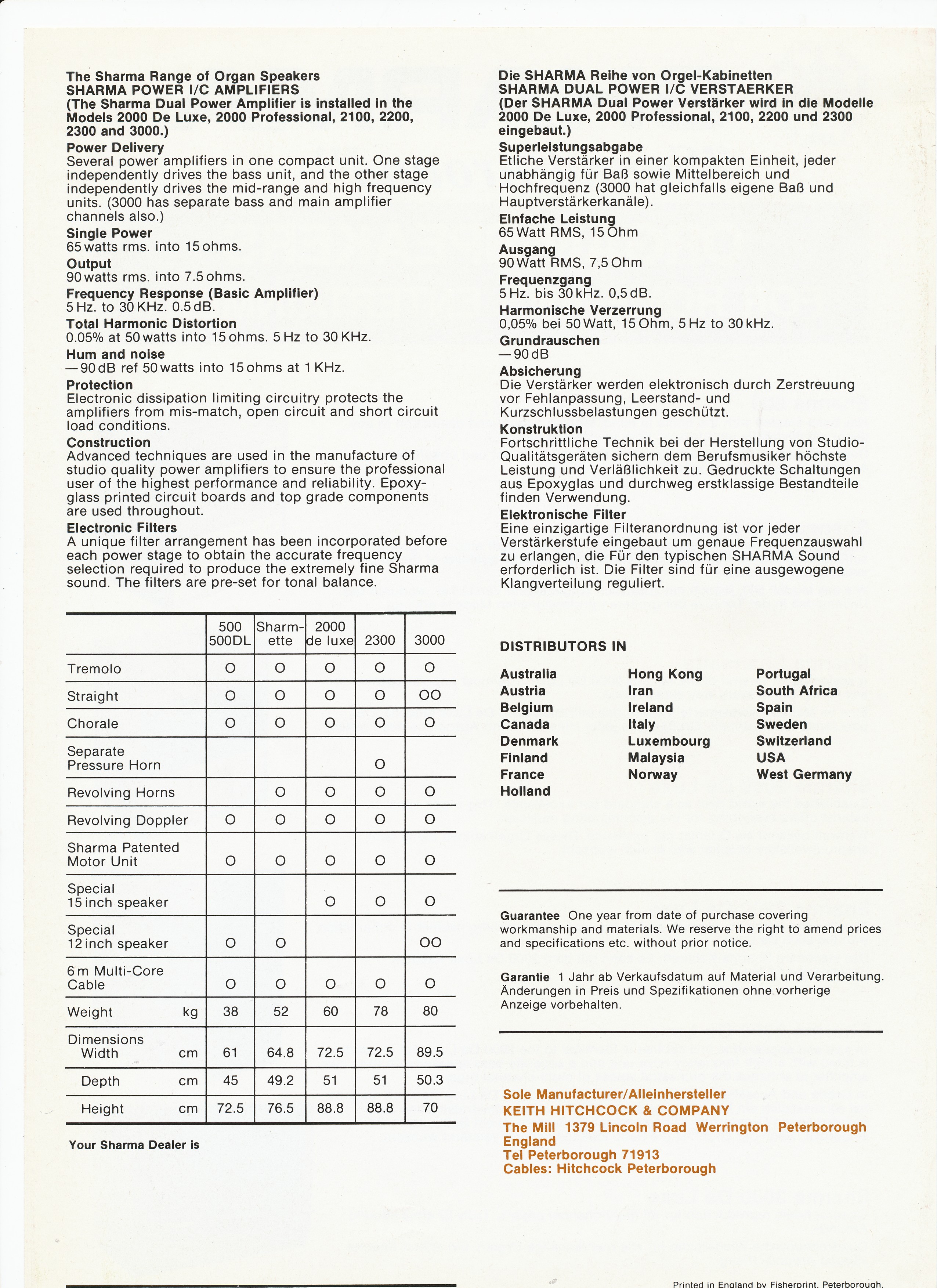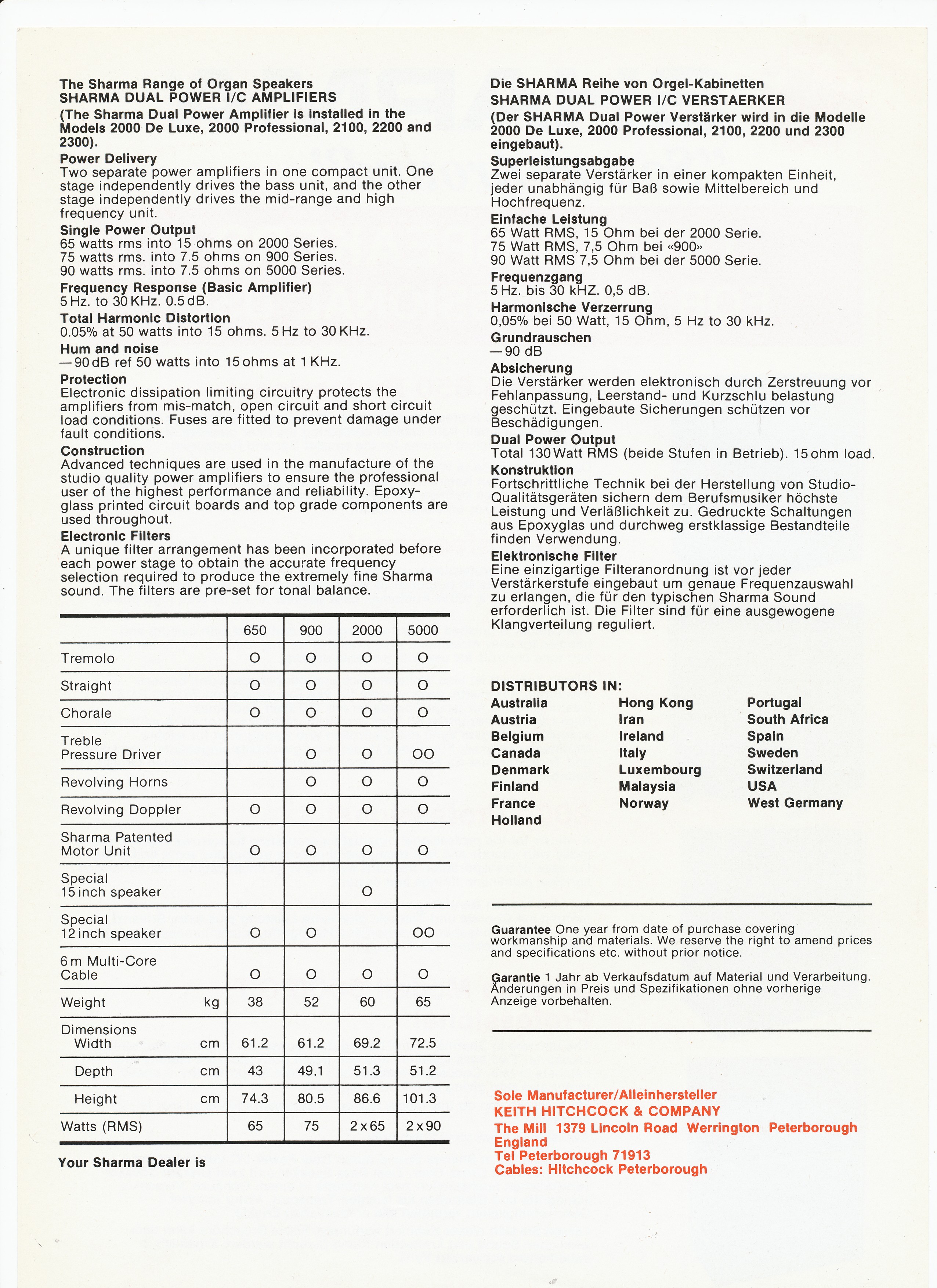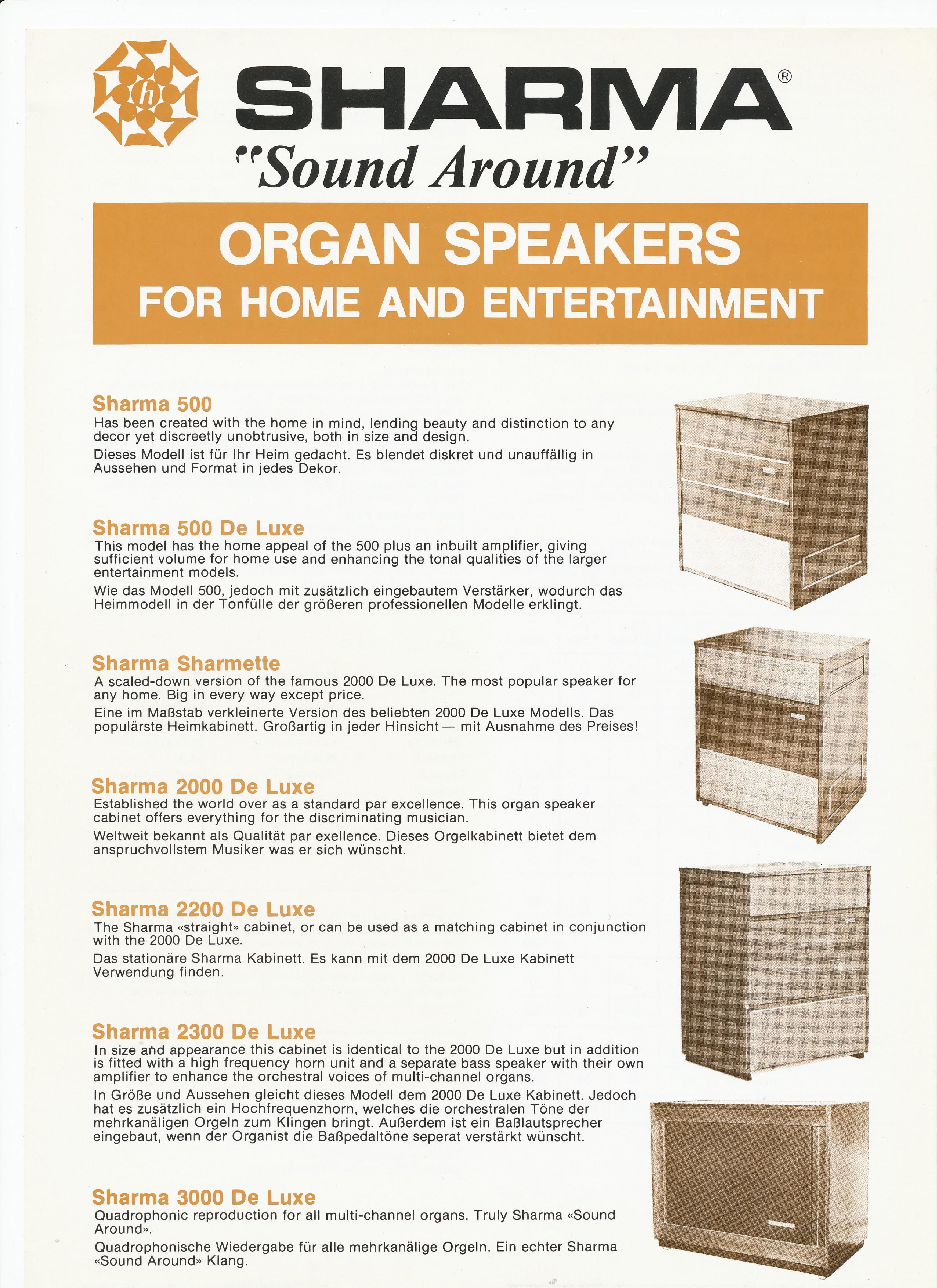 Toen de orgel fabrikanten begonnen met het toepassen van elektronische Leslie-effecten kwam Sharma nog met een serie strakke speaker-versterker systemen.