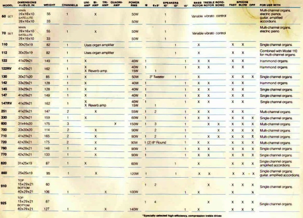 Leslie Speaker Legend Catalogue 1970