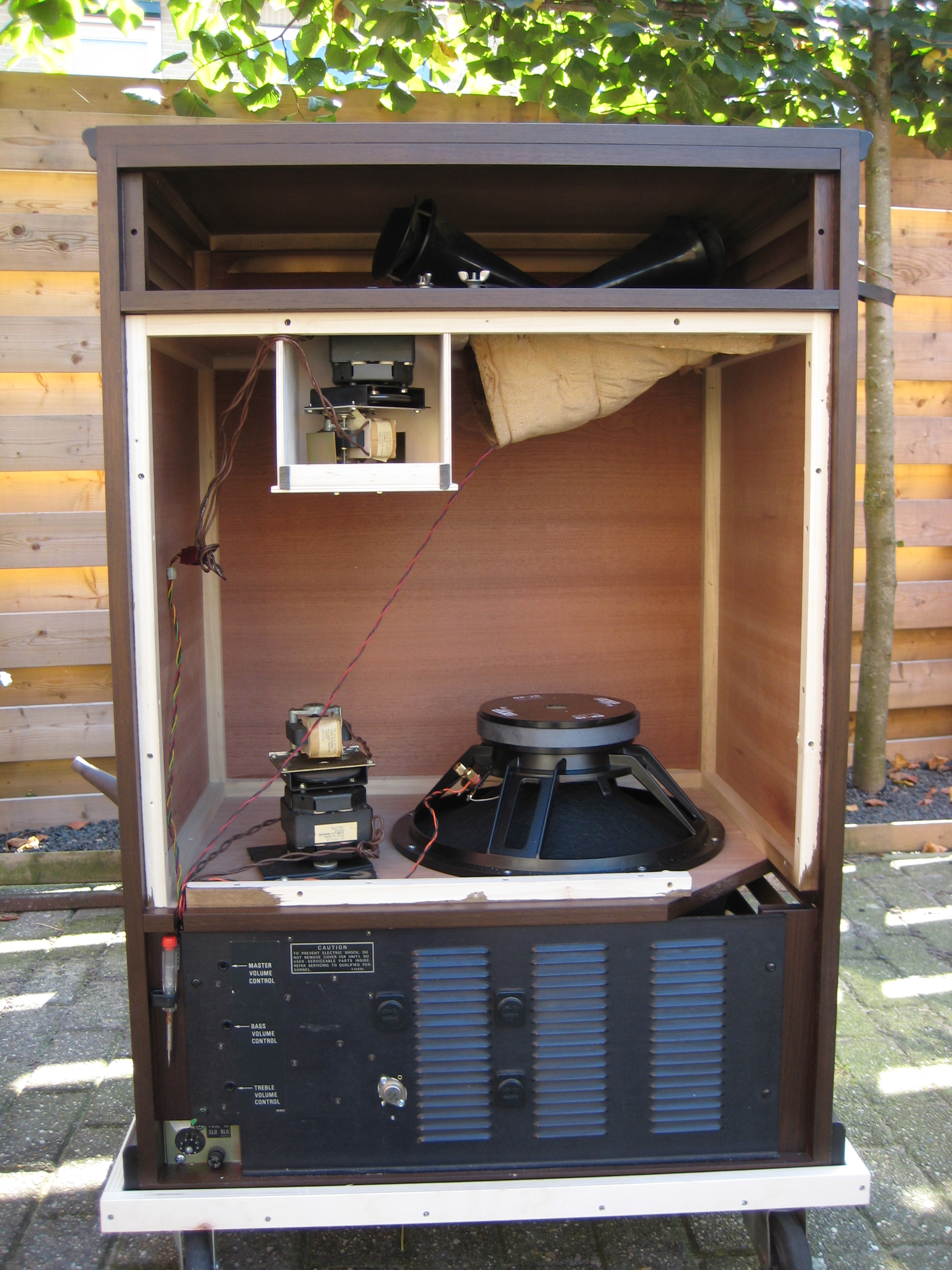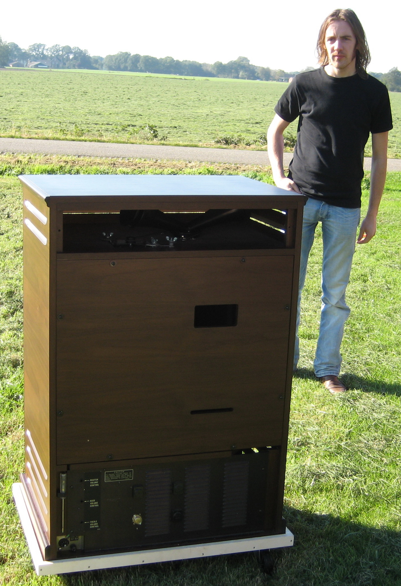Het resultaat is een Leslie 770 die fysiek nu goed bij mijn Hammond L 122 past en er mooi uitziet op het podium. Het kleine achterpaneel heb ik er wel bij gemaakt, maar die ligt thuis op een schap mooi te wezen. En nee hoor, het is niet zonde om er mee op pad te gaan, gewoon een hoes erom en beetje voorzichtig zijn.