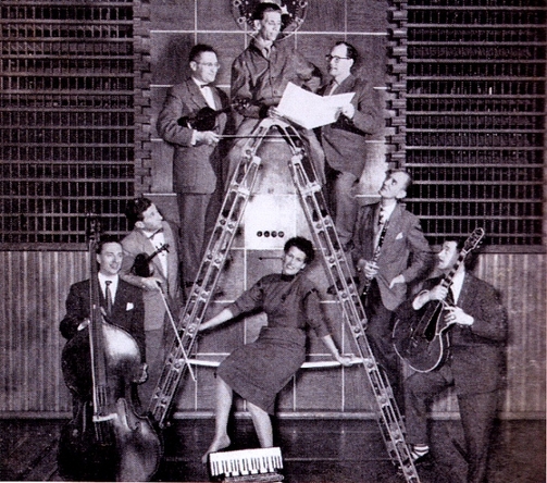 In 1949 kwam Cor Steyn weer in vaste dienst bij de VARA, aanvankelijk als medewerker van de propaganda- en programmadienst, vanaf 1950 uitsluitend als verzorger van uitzendingen. Hij was de leider van het 'Rhytmisch Strijkorkest' en het ensemble 'Zeven Man en een meisje' (Cor staat bovenop de ladder).