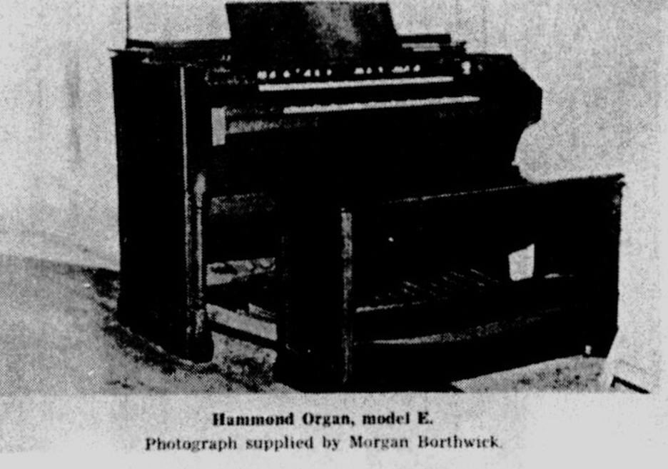 De Hammond 'BA' te Brentford, met reclame voor Klavar uit Nederland