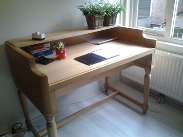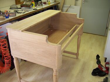 In eerste instantie gebruikte ik de kast als bureau. Het was een opvallend en praktisch meubelstuk dat jarenlang dienst heeft gedaan in mijn werkruimte. Tegenwoordig heeft de kast een nieuwe bestem-ming: mijn Tyros keyboard heeft er een prachtige plek in gevonden.