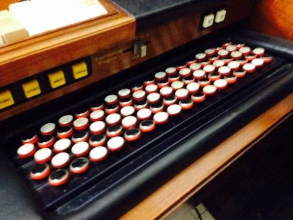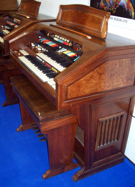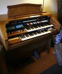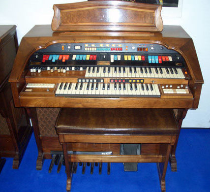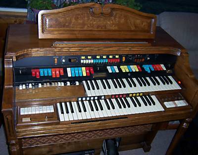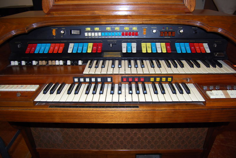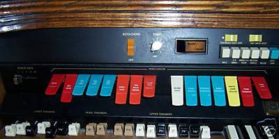 Hieronder een "vreemde uitvoering" gezien de kleuren van de registers en rhytme-knoppen: