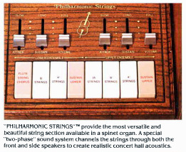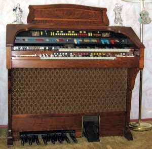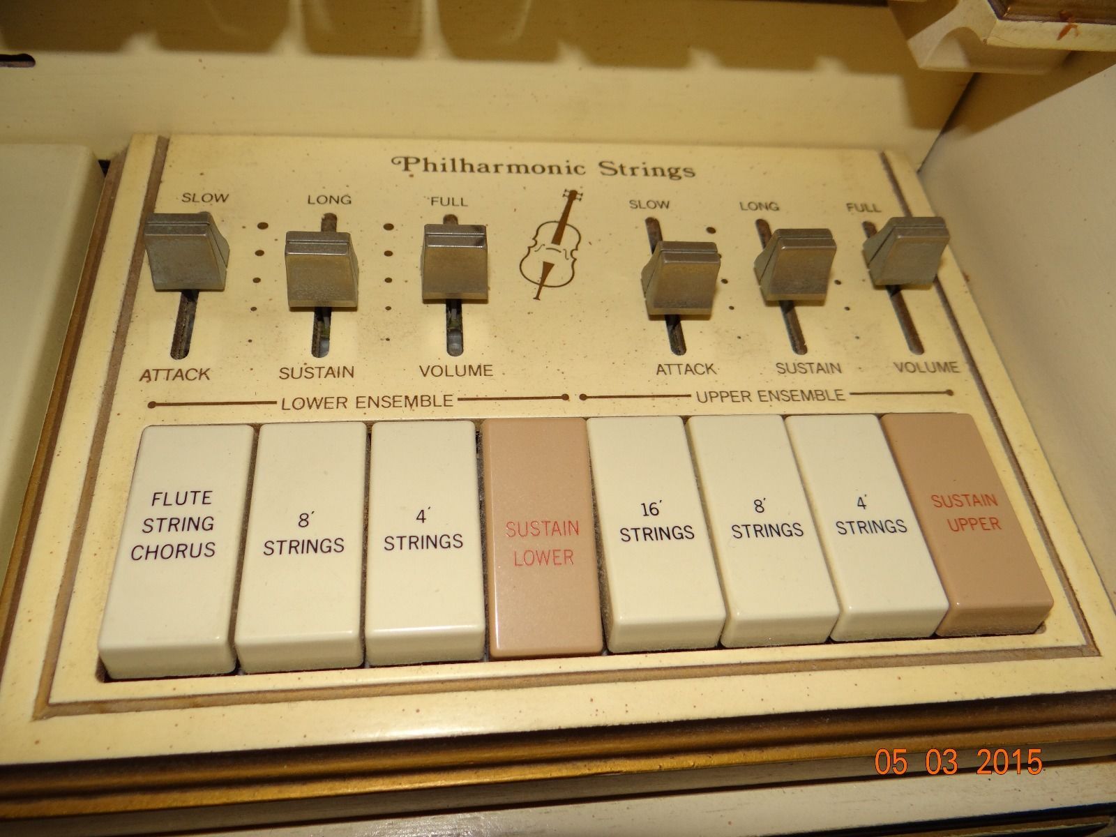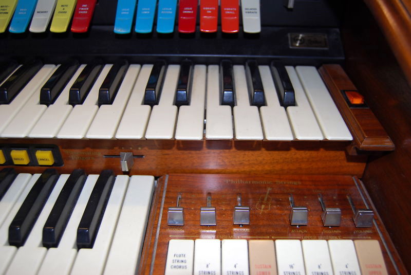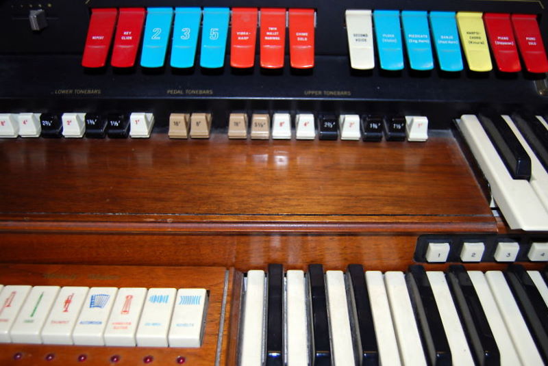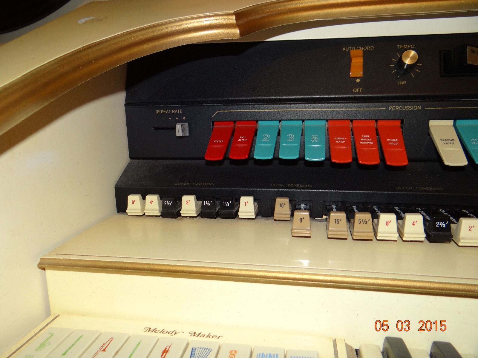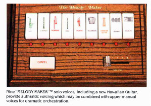 Met daaronder de drawbar en de registers van de Melody-maker (orkest-stemmen):