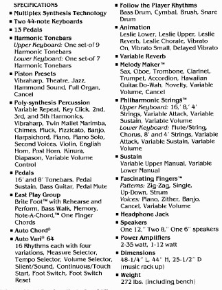 Het orgel was gewoon mooi "in balans" aangezien ondanks de toch beperkte afmetingen, het orgel een "grootse" klank had. Bovendien viel het horse shoe meubel zeer goed in de smaak van toen en zijn er grote aantallen verkocht en bestonden er ook lange levertijden.