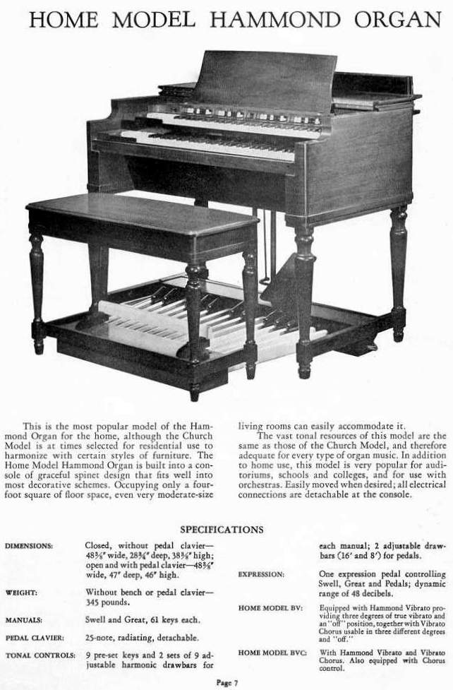 Je ziet, dat de firma nog Hammond Instrument Co. heette. Dit sloeg niet op muziekinstrument, want er werden meerdere produkten op de markt gebracht, zoals hier te lezen is. Hiervoor was het nog de clock-company.