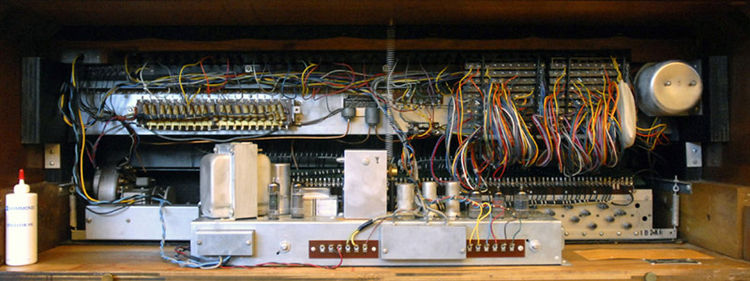 Binnenzijde van een B-3 met prominent aan de rechterzijde de preset rails, waar eigen presets "geprogrammeerd" konden worden, wat bijna niemand gebruikte...