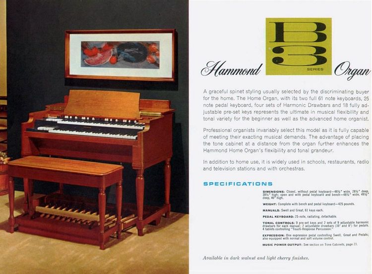 Hoewel qua klankkleur er meerdere modellen zijn, die er mee te vergelijken zijn spreken de B-2 en B-3 toch het meest tot de verbeelding. Met zijn karakteristieke kast, waardoor het publiek goed zicht heeft op het voetenwerk en vooral in combinatie met een Leslie 122 of 147 krijg je de ultieme Hammond-sound. Let wel op, dat de B-2/B-3 een meubel hebben, welke uit de verte erg lijkt,op die van de "Oer-A", maar dat model verscheen al vele jaren eerder en heeft veel technische verschillen.