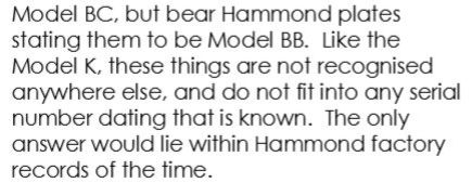 Van dit in 1936 in de USA geproduceerde model is weinig bekend. Wel bekend is, dat het voor korte tijd verkocht is door Boosey & Hawkes uit Engeland. Het was eigenlijk het eerste HAMMOND A-model, maar dan in een Model B-cabinet met de bekende vier gedraaide poten.