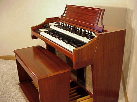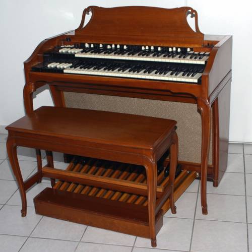 Netjes in Traditional uitvoering en in Walnut heette hij C-100. De C-102 was hetzelfde orgel, maar dan compleet identiek aan de Amerikaanse A-102, dus French Provincial, en in Light Cherry fineer.