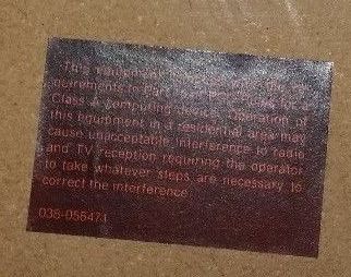 Op de volgende sticker is te lezen, dat dichtbij geplaatste apparaten voor een (interferentie) storing konden zorgen.