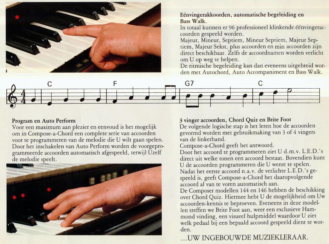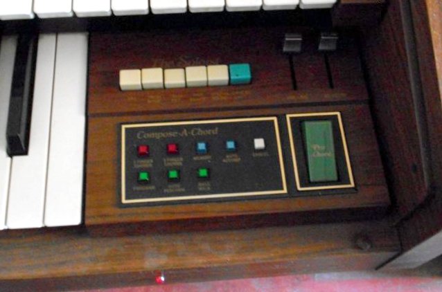 De naam Composer doelt op de functie "Compose-A-Chord " hetgeen duidt op het kunnen programmeren/opnemen van een akkoorden lijn. Dat was een hele tour en menig organist lukte het niet.