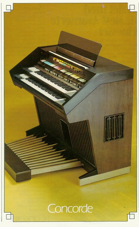 De Concorde was in de traditie van de vroegere X-66, X-77, etc. een ware mastodont. Zo'n beetje alle nieuwe uitvindingen waren aan boord: het AV-64 ritme, 4 sets drawbars, een arpeggio-strip, percussies van bijna alle voetmaten. Het was een waar concert-orgel. Hier worden de mogelijkheden uitgelegd.