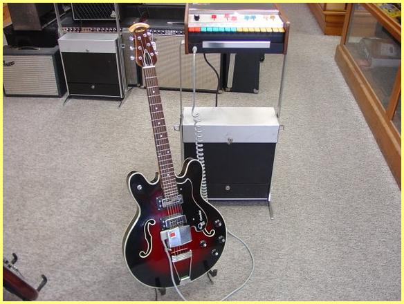 The styling is 335 esque with a bit of Supro thrown in: fully bound (binding is in A1 condition), including the 'F' holes.