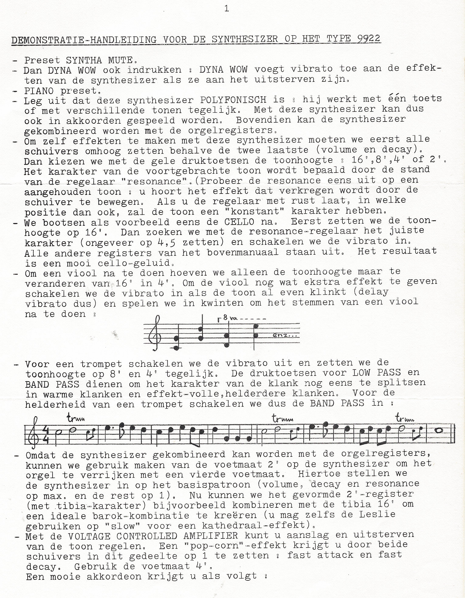 De Demonstratie-Handleiding, welke de Hammond dealers ontvingen, om hun klanten de ingeb. synthesizer zo goed mogenlijk te kunnen uitleggen:
