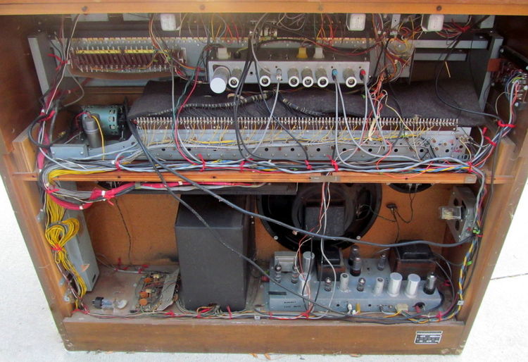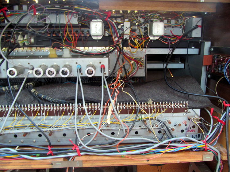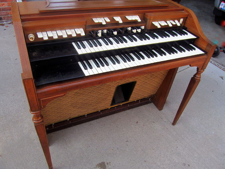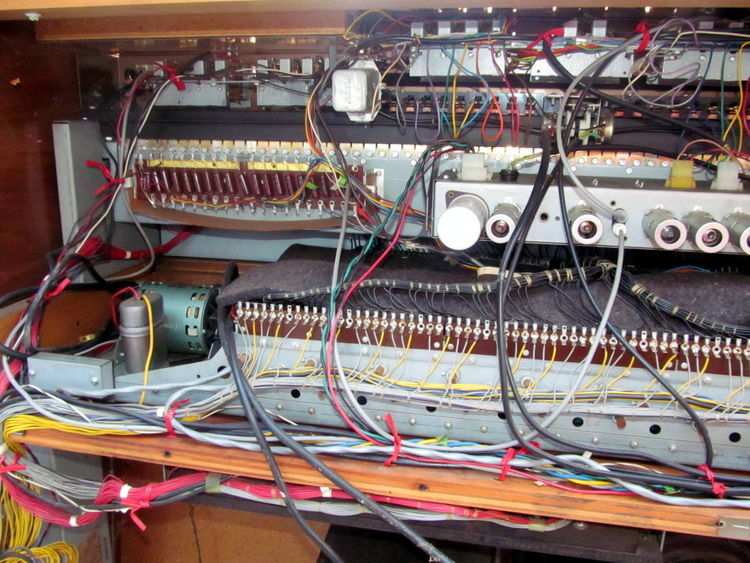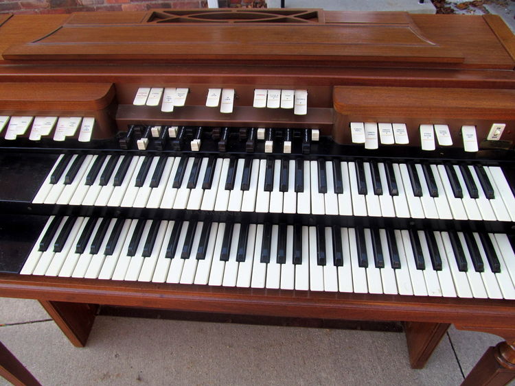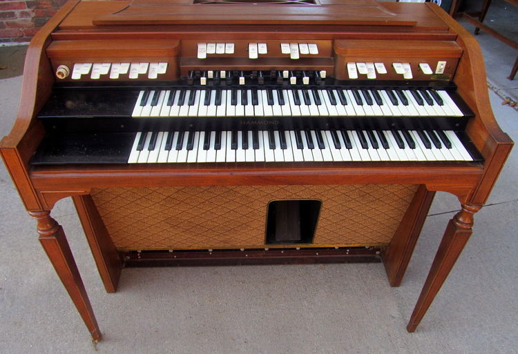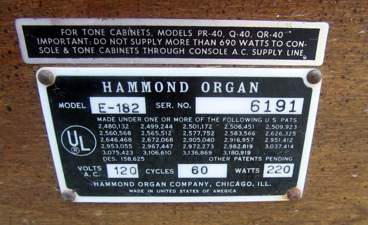 Hieronder een E-182. Dit model werd aanvankelijk (ook) met een bruin registerpaneel geleverd. Latere instrumenten werden met een zwart register paneel geleverd.