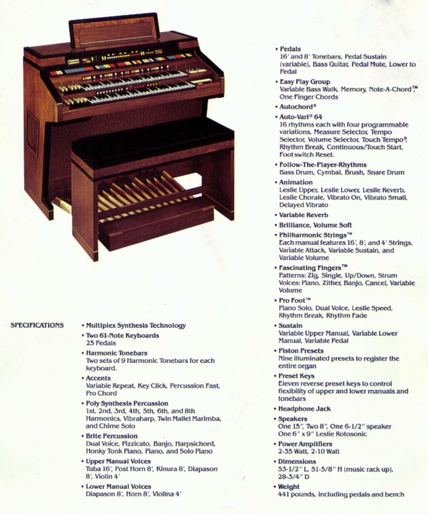 Echter werd verder wel aan de speler gedacht. De schakelaars in het zwelpedaal hadden vele toewijsbare functies, de transpose-functie was zeer makkelijk te bedienen, etc.