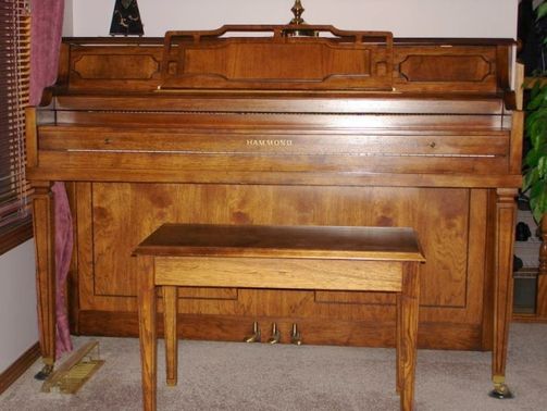 De foto's hieronder geven een breed beeld van de diverse Hammond piano's.