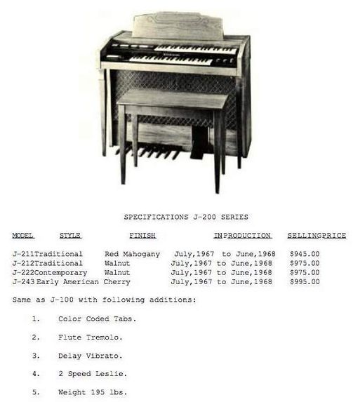 De J-serie dateert uit het midden van de jaren 1960 en was een poging om een low-cost transistor spinet orgel te bouwen voor de beginnende spelers.