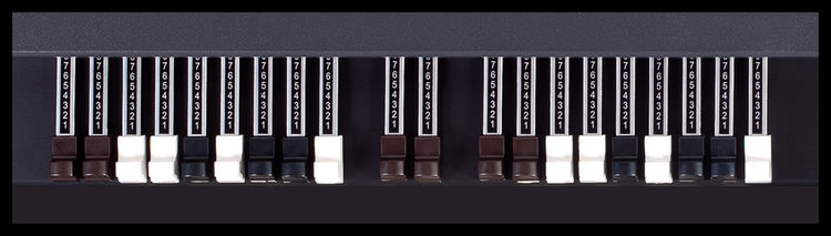 Controls 2 x 9 presettoetsen en 2 sets van 9 drawbars voor elk klavier.