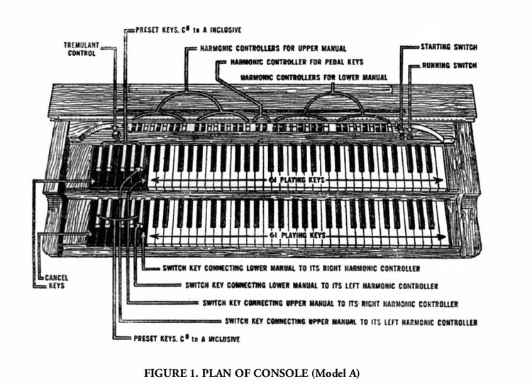 Model A zag er zo uit. Veel mensen denken bij het zien van de volgende foto's direct aan de Hammond B(3), die ook op vier gedraaide poten stond, maar die kwam pas later.