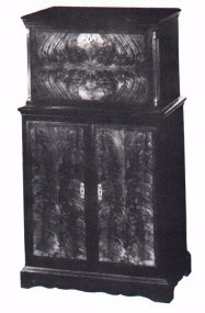 Hij werd uitgevoerd in Amerikaans noten met koper beslag.