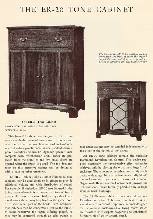 Ingebouwd zijn een 20 Watt versterker en twee 12 inch luidsprekers samen met een reverb-unit. Er is vooral gezorgd, dat, zoals bij andere modellen noodzakelijk, de bovenkant niet opengezet hoeft te worden, zodat er de graag geziene vaas op gezet kon worden.