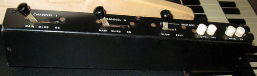Een in de Hammondfabriek handmatig en individueel geproduceerde schakel en regelunit,
