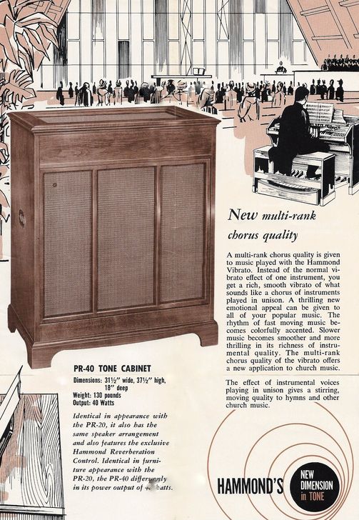 Het Hammond tonekabinet PR-40 werd gemaakt vanaf 1959.