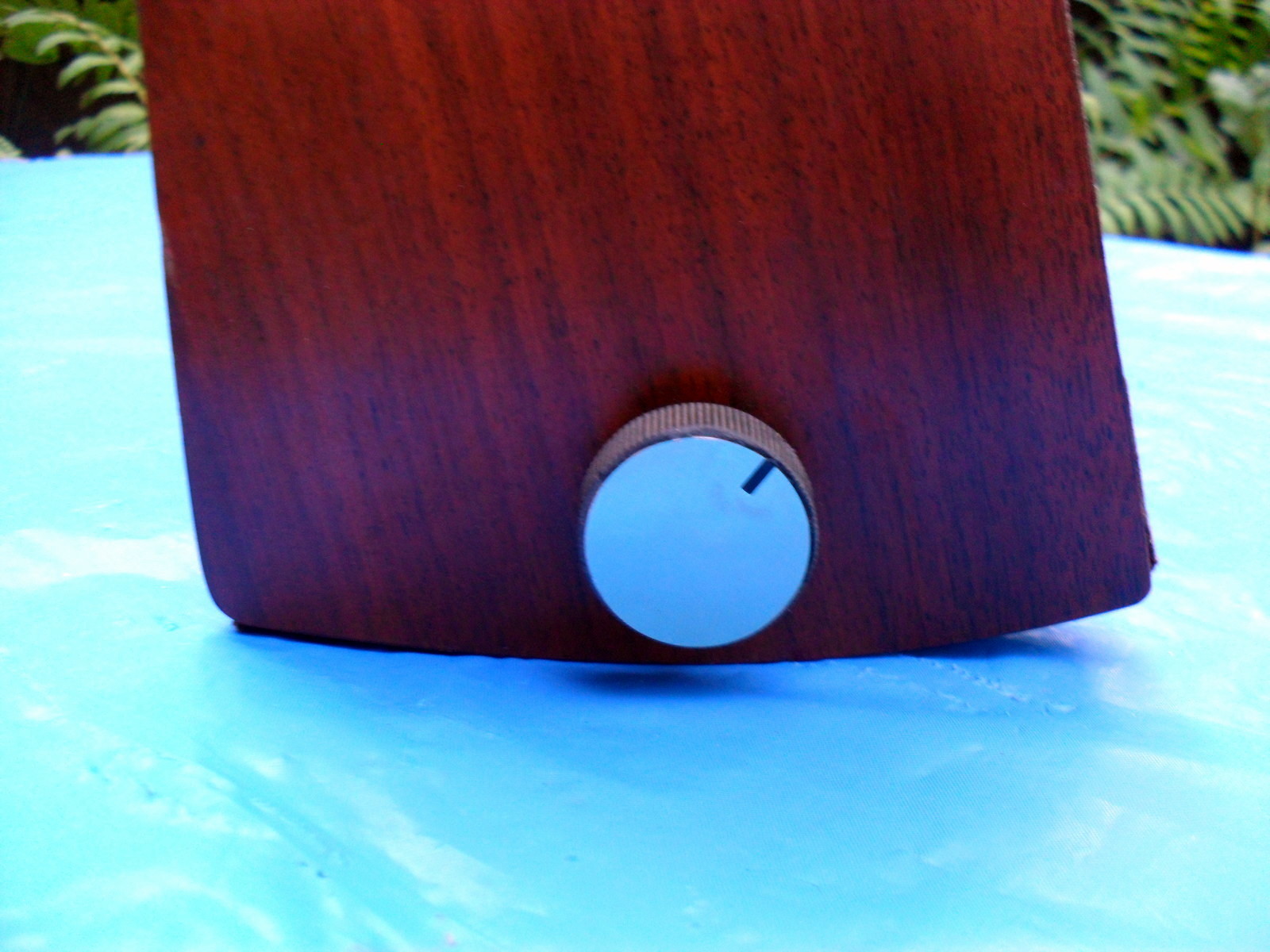 de volume regelaar zat aan de linkerzijkant van de speaker.