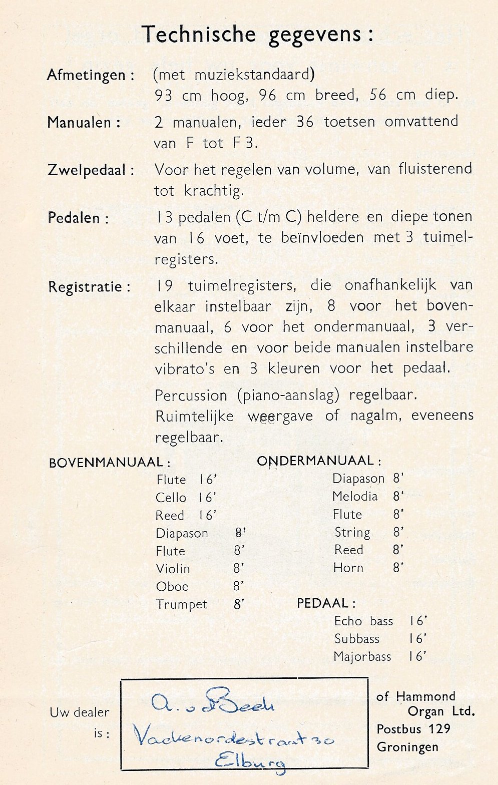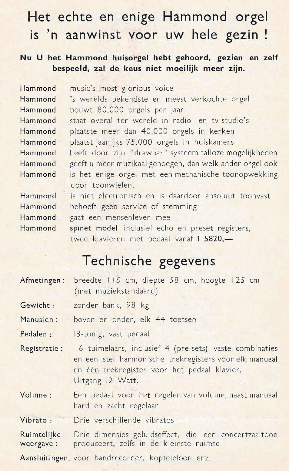Deze folder dateert van begin 60er jaren, toen Hammond Noord in Groningen actief was.