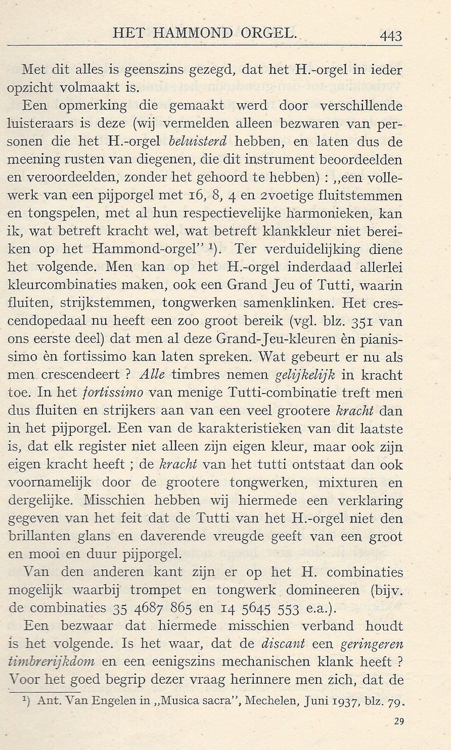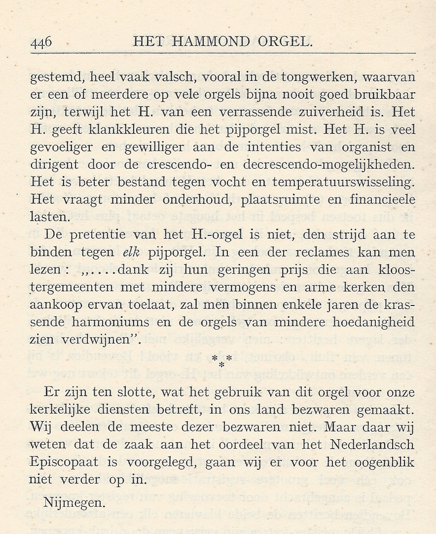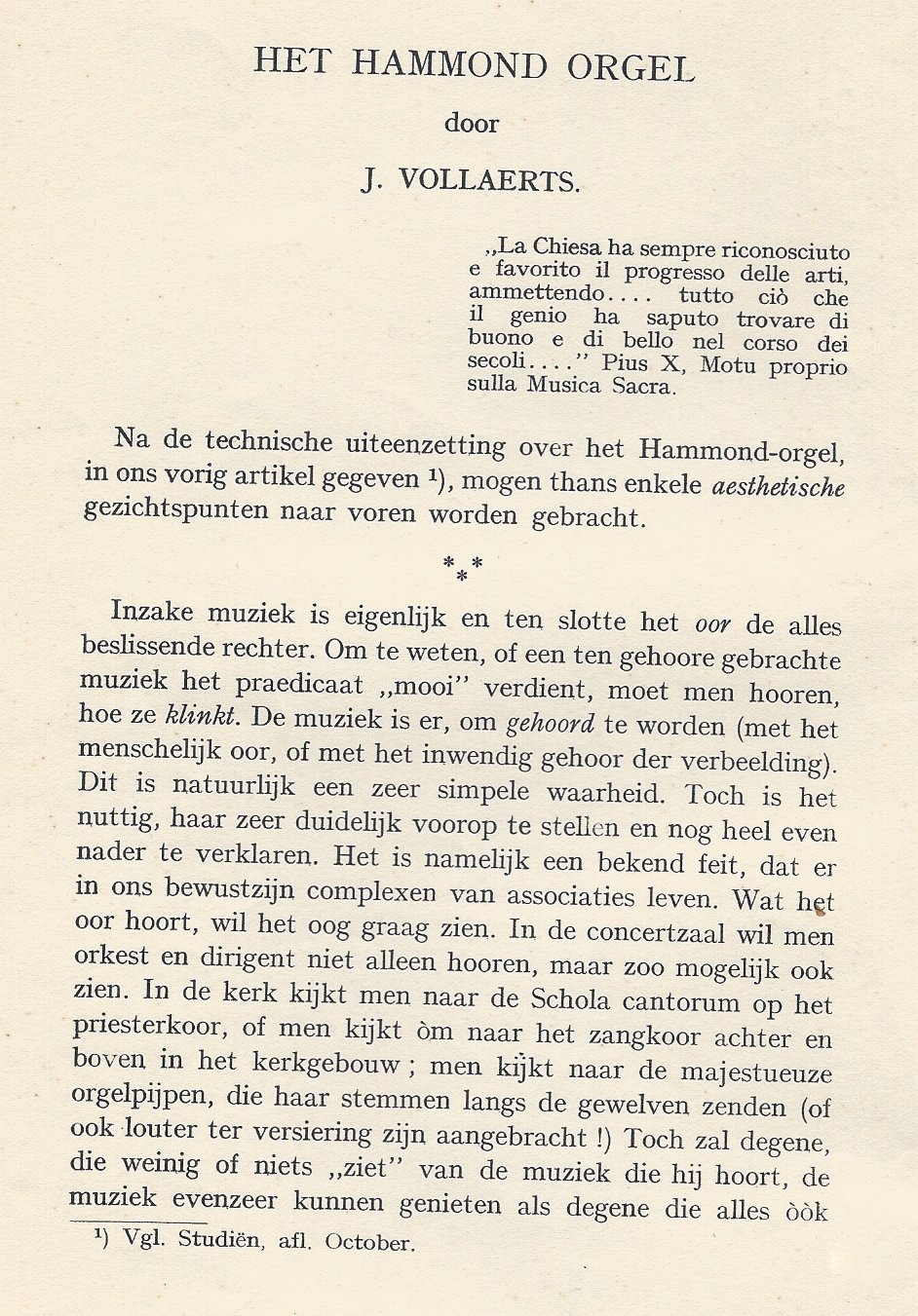 over het " Aesthetische" aspect van het Hammondorgel binnen de kerk